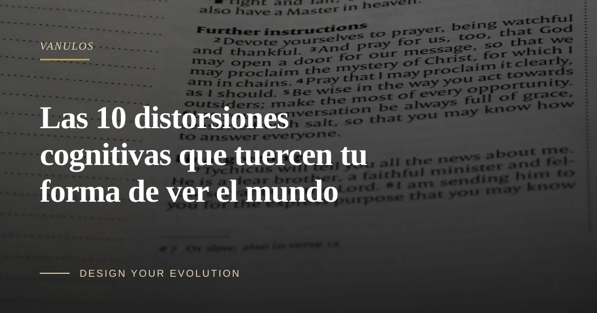 Las distorsiones cognitivas son fallos específicos y recurrentes en el proceso de interpretación. No te hacen irracional. Te hacen humano. Toda persona que lee esto ha aplicado al menos tres de ellas en la última semana — probablemente más. Las distorsiones en sí no son el problema. El problema es ejecutarlas de forma invisible, sin examinar jamás si la interpretación se ajusta a la evidencia.