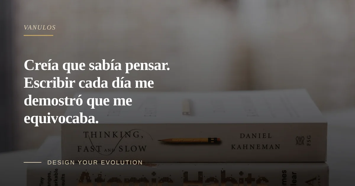 Diseñar tu evolución significa diseñar los inputs que la producen. Tu pensamiento es el input más fundamental de todos —y el hábito de escritura diaria es la forma de dejar de permitir que ese proceso ocurra accidentalmente y empezar a dirigirlo con intención.