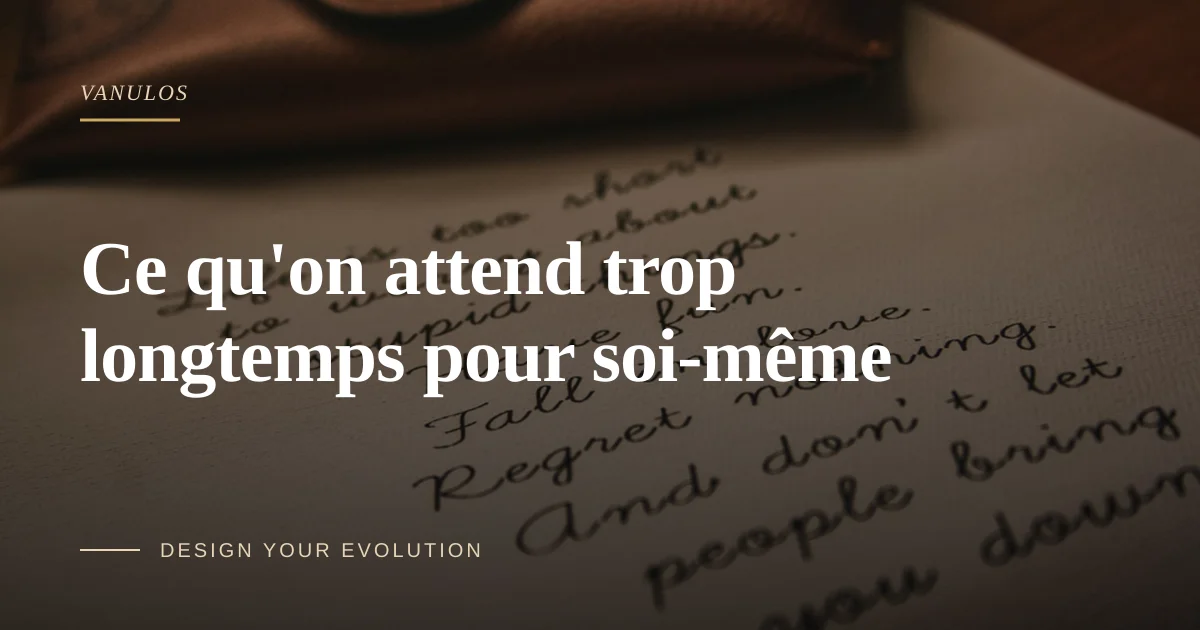 Tu peux être ce quelqu'un. Pas demain — aujourd'hui, dans l'heure qui vient, avec la première petite chose de ta liste. Design Your Evolution n'est pas sur notre bandeau par hasard. C'est le seul vrai travail que chacun d'entre nous ait jamais, et l'horloge tourne que l'on démarre ou non.