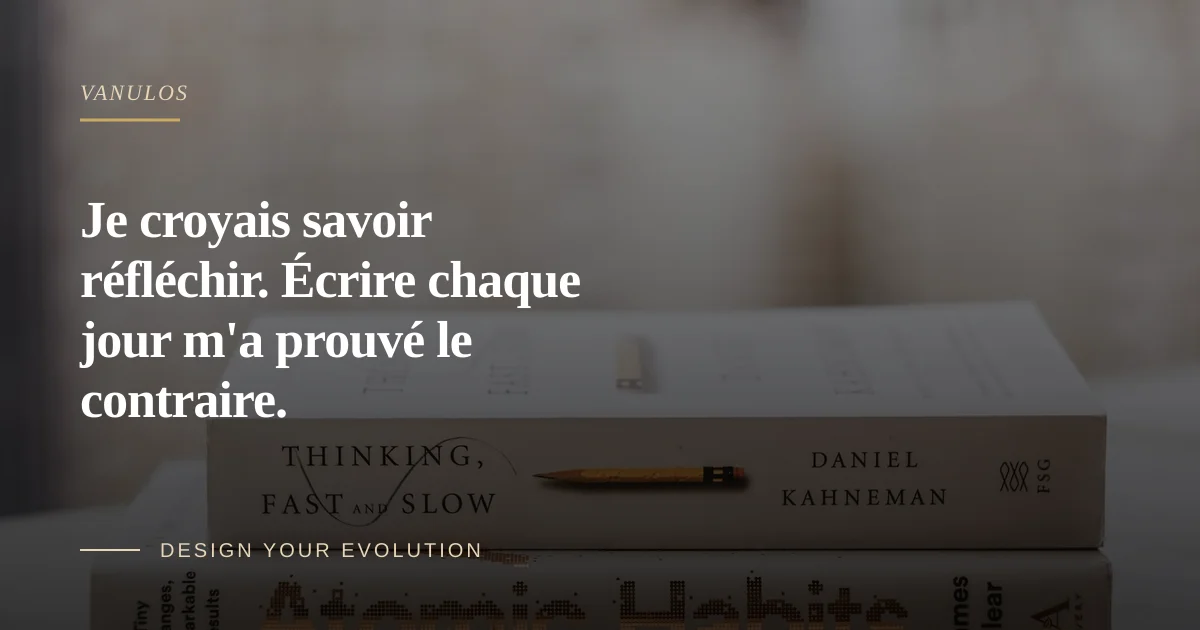Concevoir ton évolution, c'est concevoir les inputs qui la produisent. Ta pensée est l'input le plus fondamental de tous — et l'habitude d'écriture quotidienne est la façon de cesser de laisser ce processus se produire par accident et de commencer à le diriger avec intention.