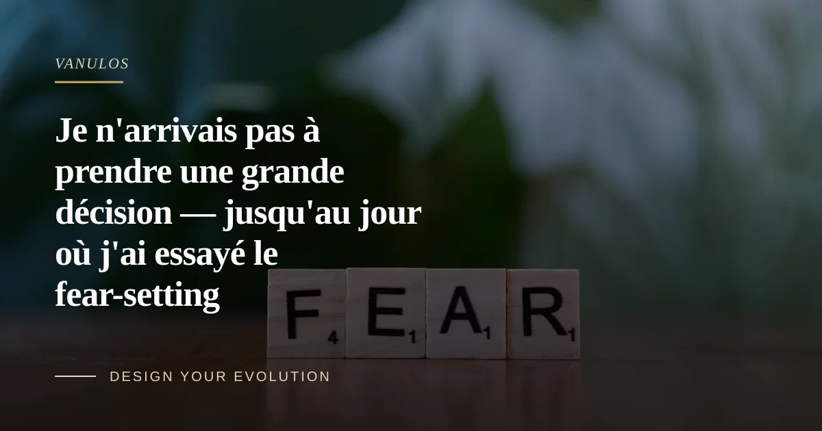Depuis, j'ai pris des décisions bien plus importantes avec beaucoup moins d'anxiété. Non parce que je suis devenu plus courageux, mais parce que j'ai découvert un outil qui fonctionne comme une soupape de décompression pour la peur qui paralyse les esprits intelligents. Le fear-setting a changé ma façon de concevoir le risque pour toujours.