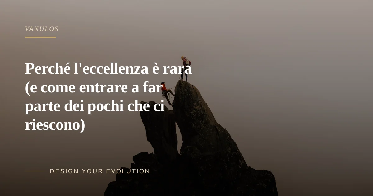 C'è qualcosa che raramente viene detto con chiarezza: la maggior parte delle persone non diventerà mai eccellente in nulla di ciò che conta davvero per loro. Non perché il talento sia scarso. Non perché le circostanze siano fondamentalmente ingiuste. E nemmeno — nonostante quello che molti credono in silenzio — perché l'opportunità giusta non si è mai presentata al momento giusto.